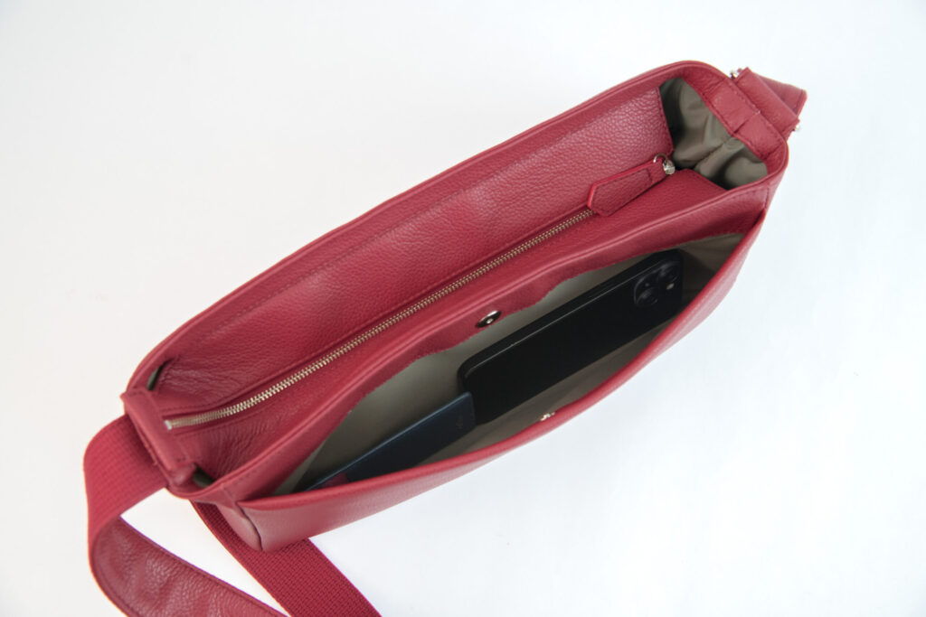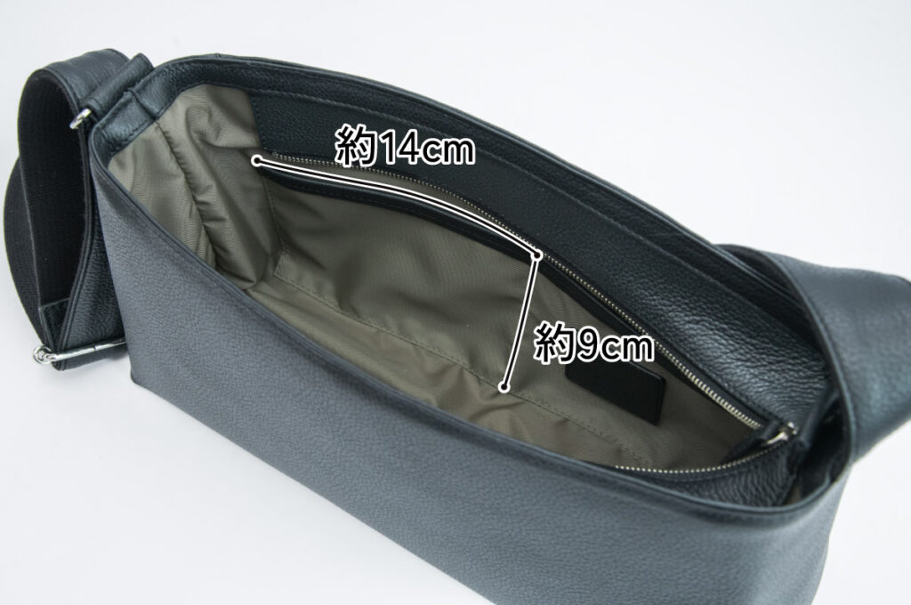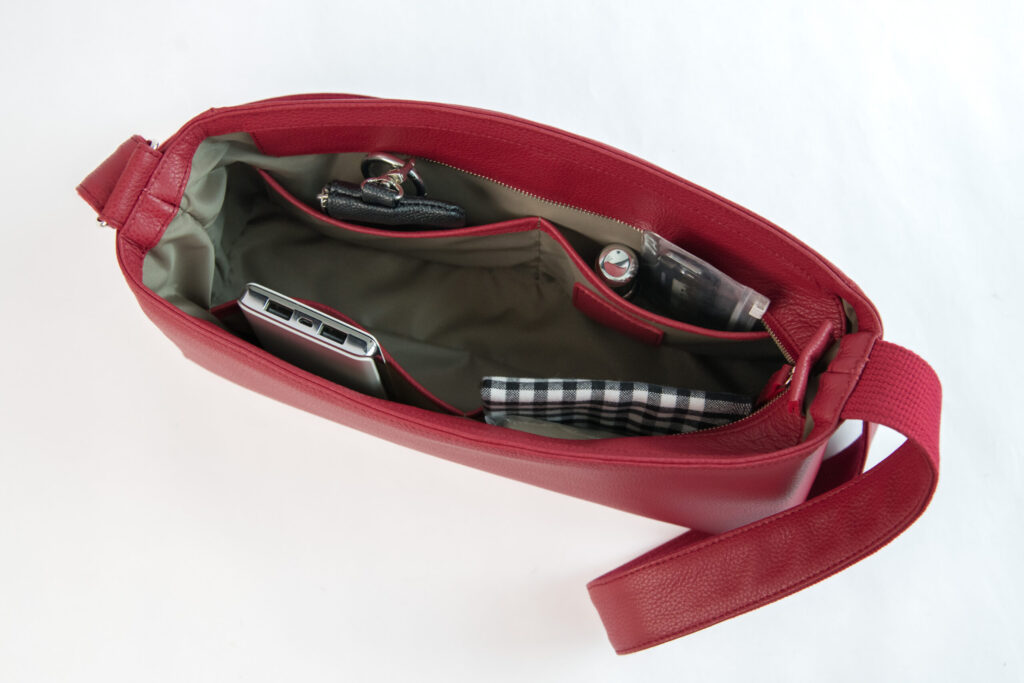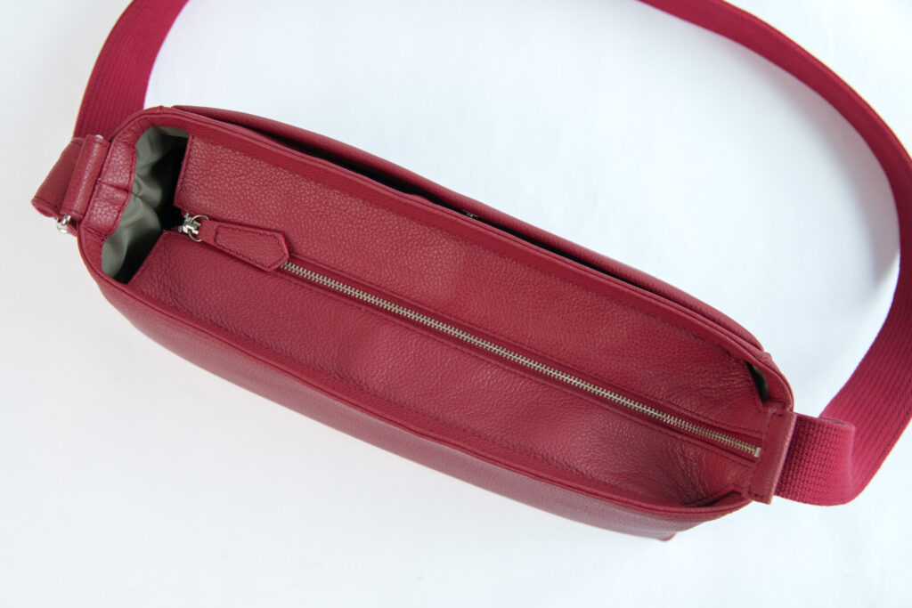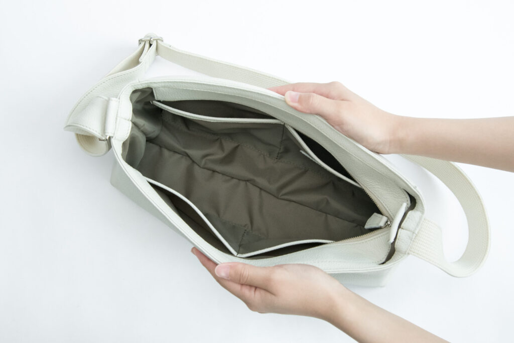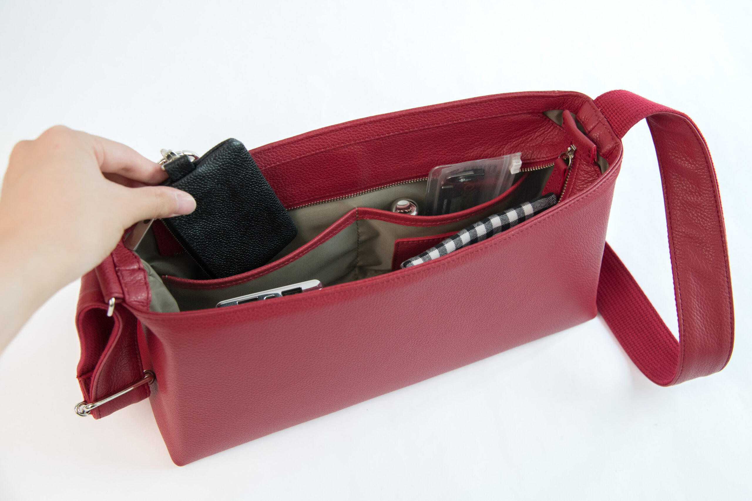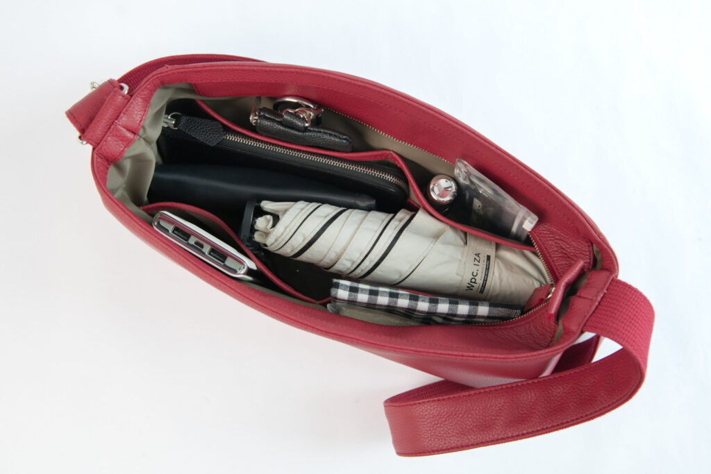 縦型バッグでありがちな、「荷物がごちゃつく…」という事が解消され、素早く物を取り出すことができます。