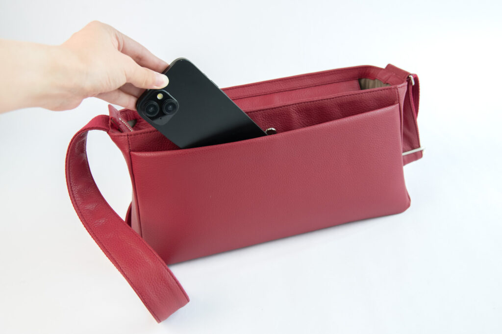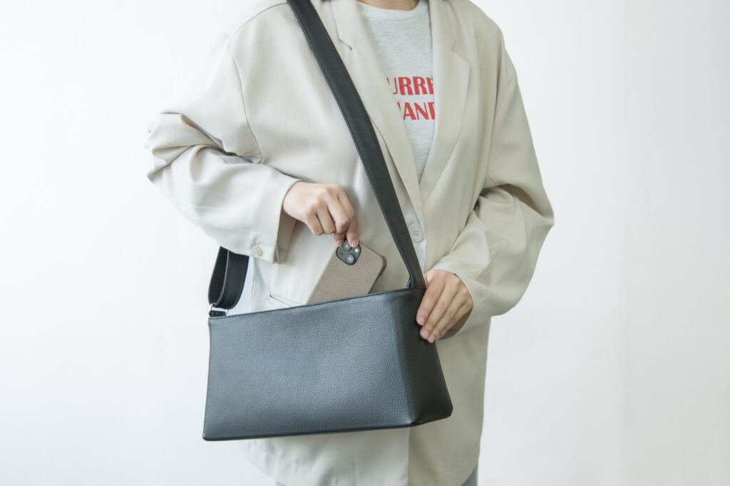 大きく薄めなので、スマホやパスケースなどサッと取り出したいものを入れるのに便利です。