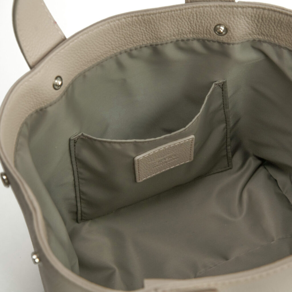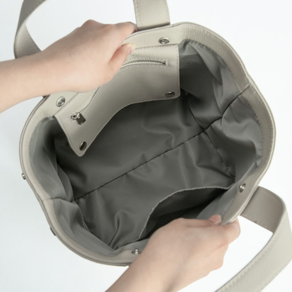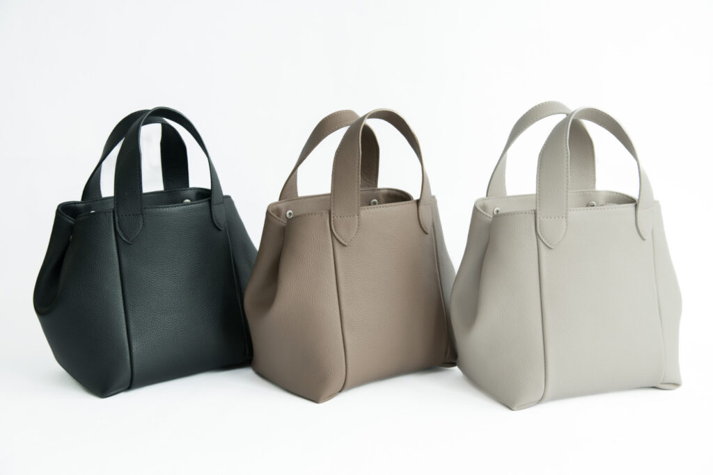 小さめのシボで半光沢の自然な表情を持つため、このバッグにピッタリです。