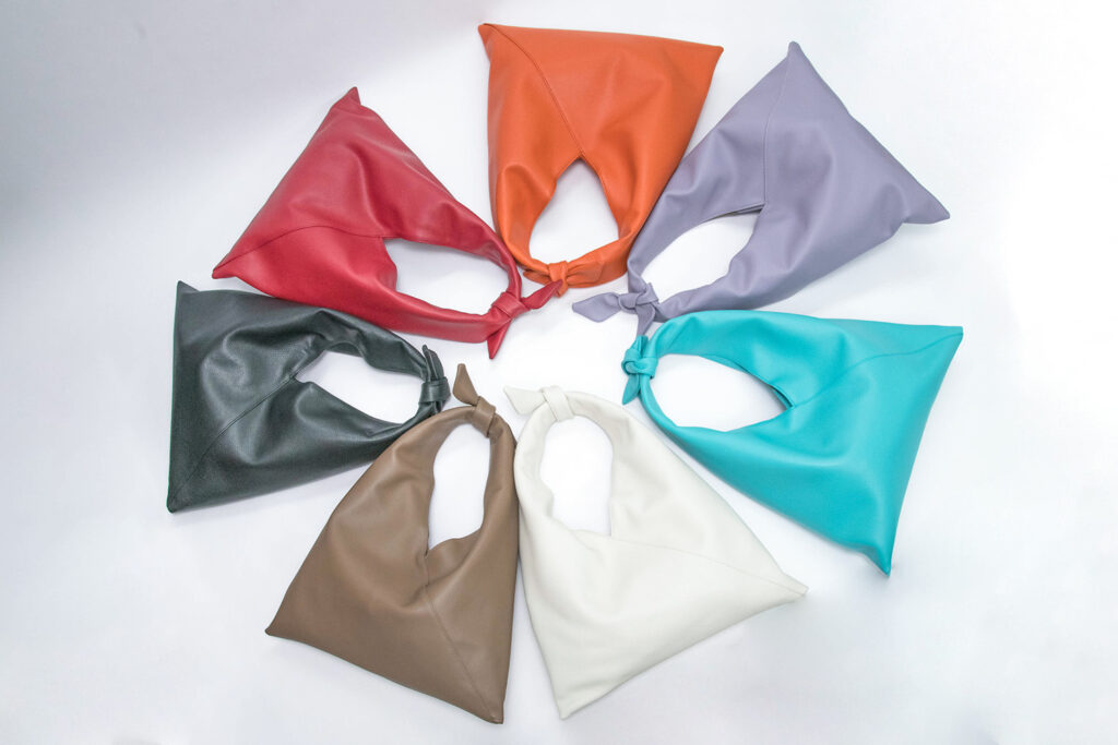 風呂敷・着物から着想を得た、軽くてしなやかな三角バッグ。