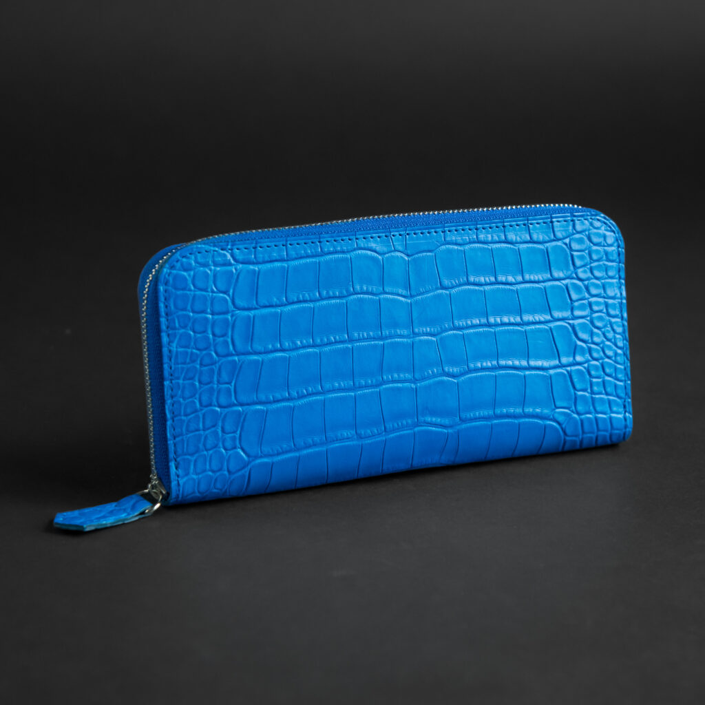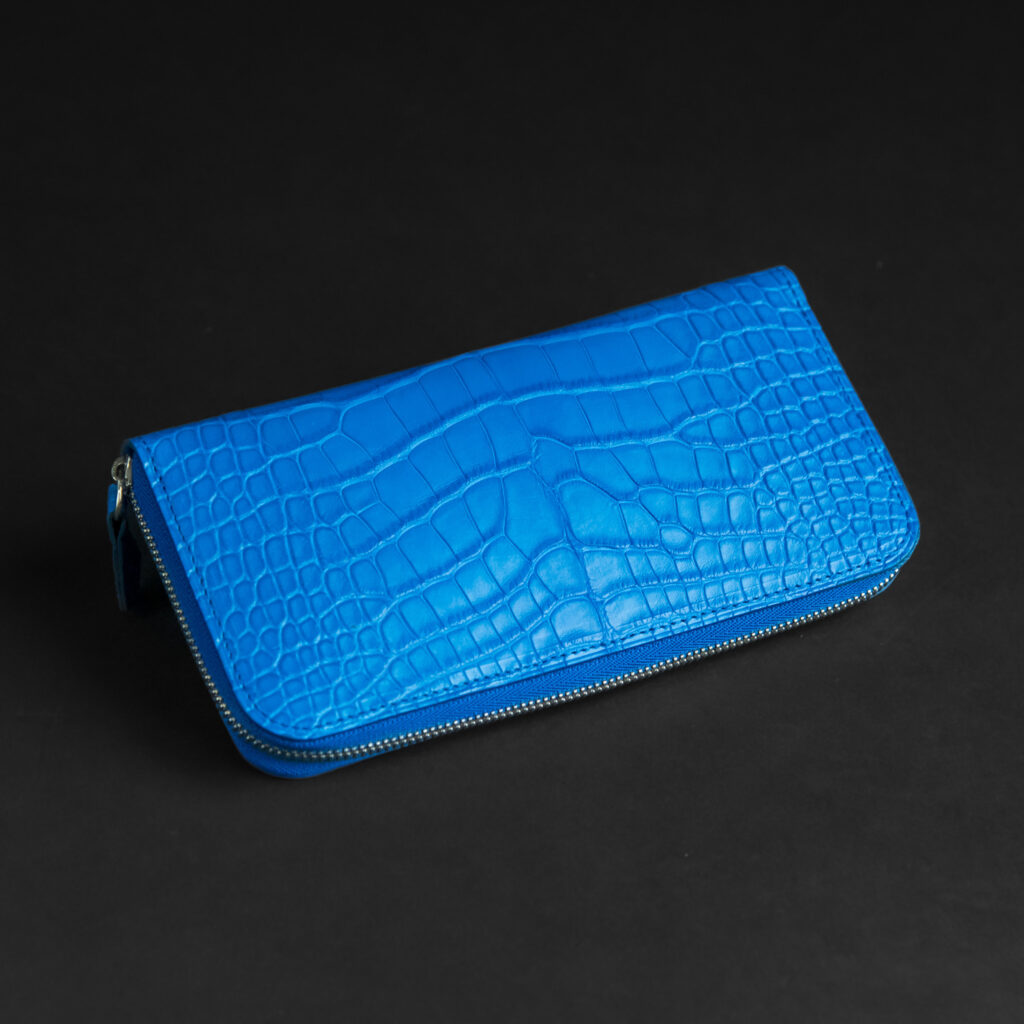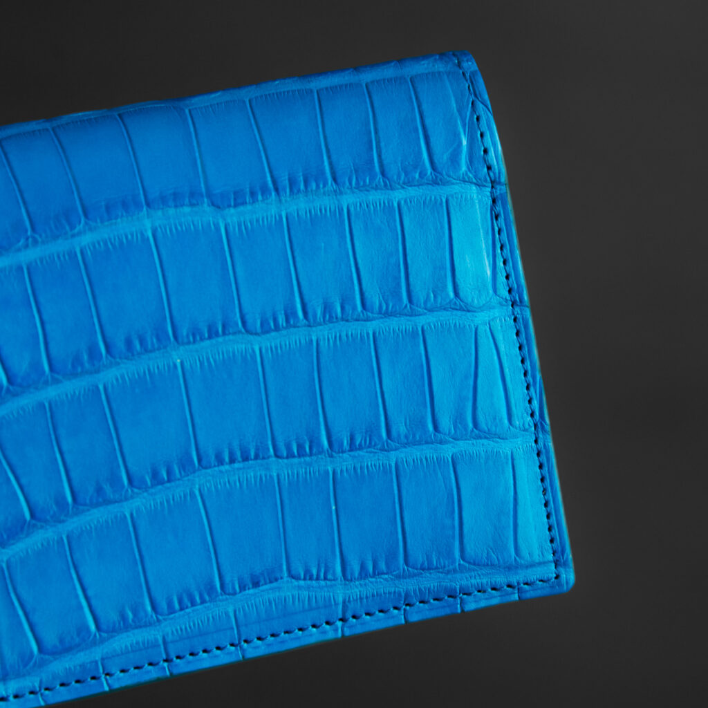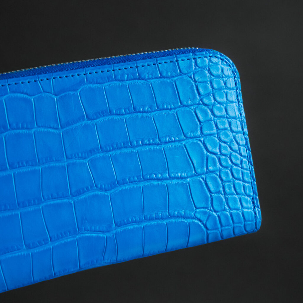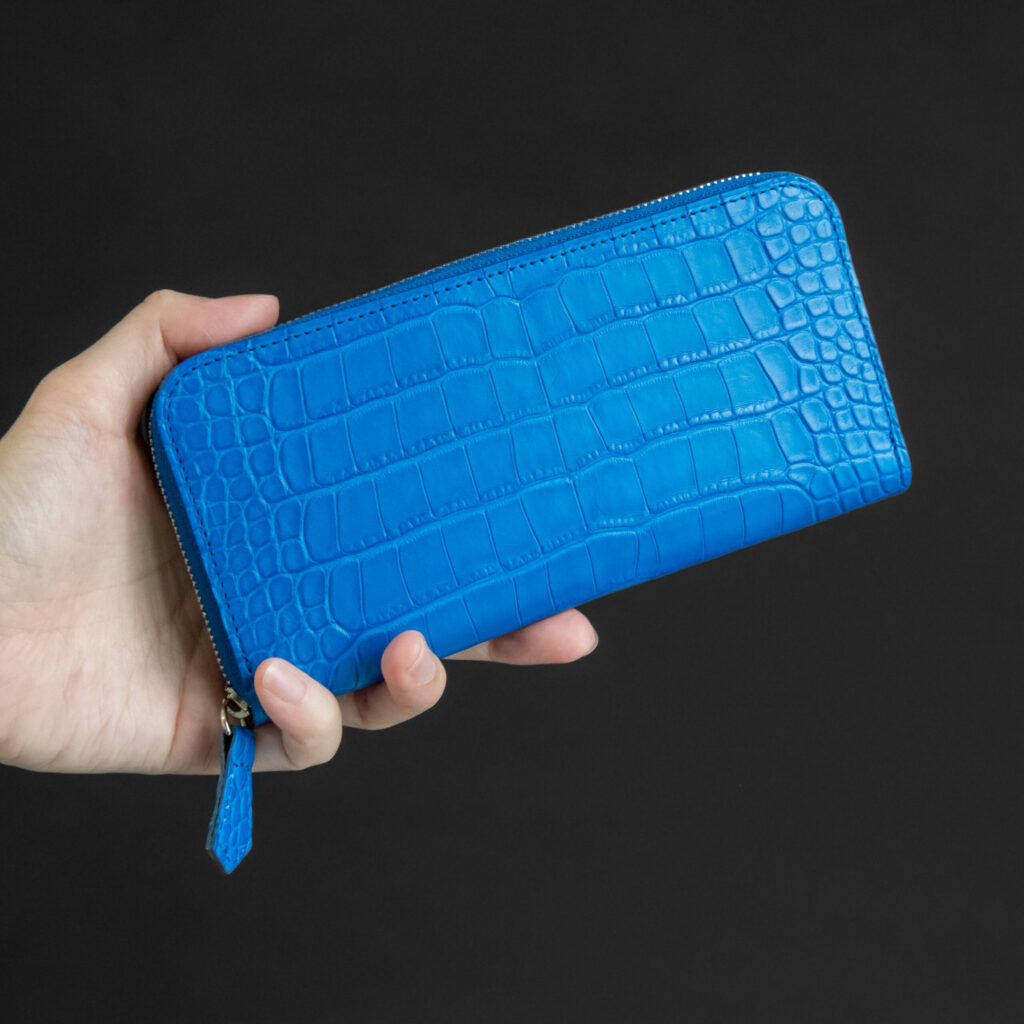ワニ革は「エキゾチックレザーの王様」と称され、大きく「クロコダイル」「アリゲーター」「カマイン」の3種類があります。こちらの財布に使用しているのは、「アリゲーター」と言い、柔らかくしなやかな質感が特徴です。