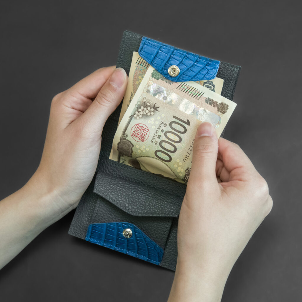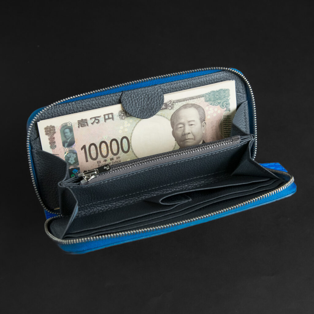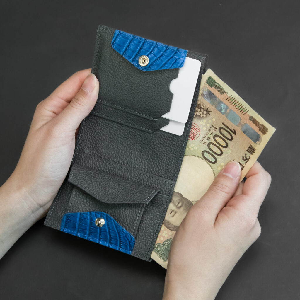 新進工房の定番作品。キャッシュレス時代のコンパクト長財布。