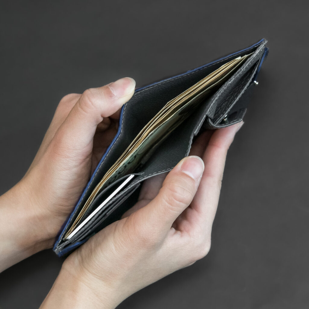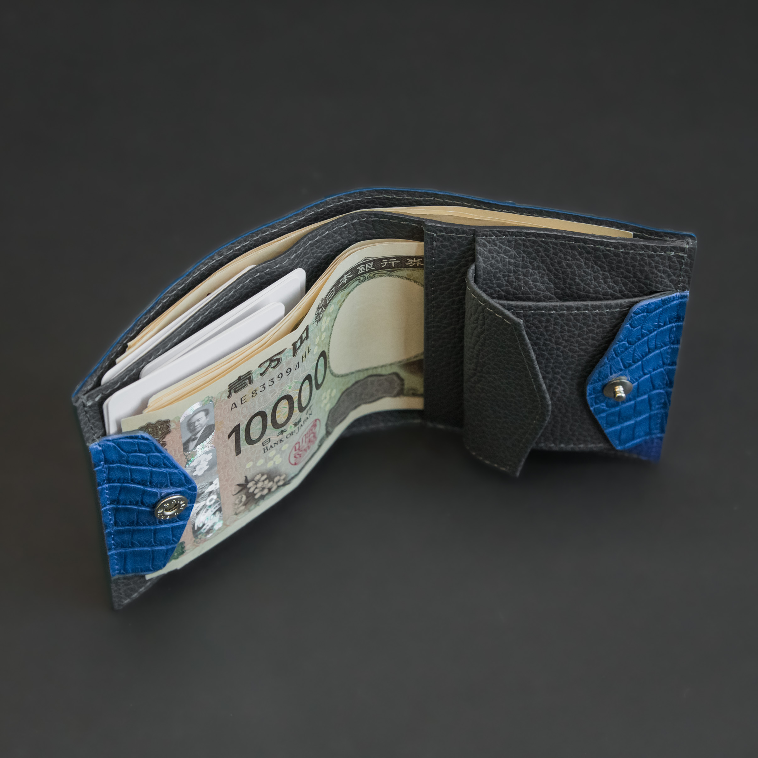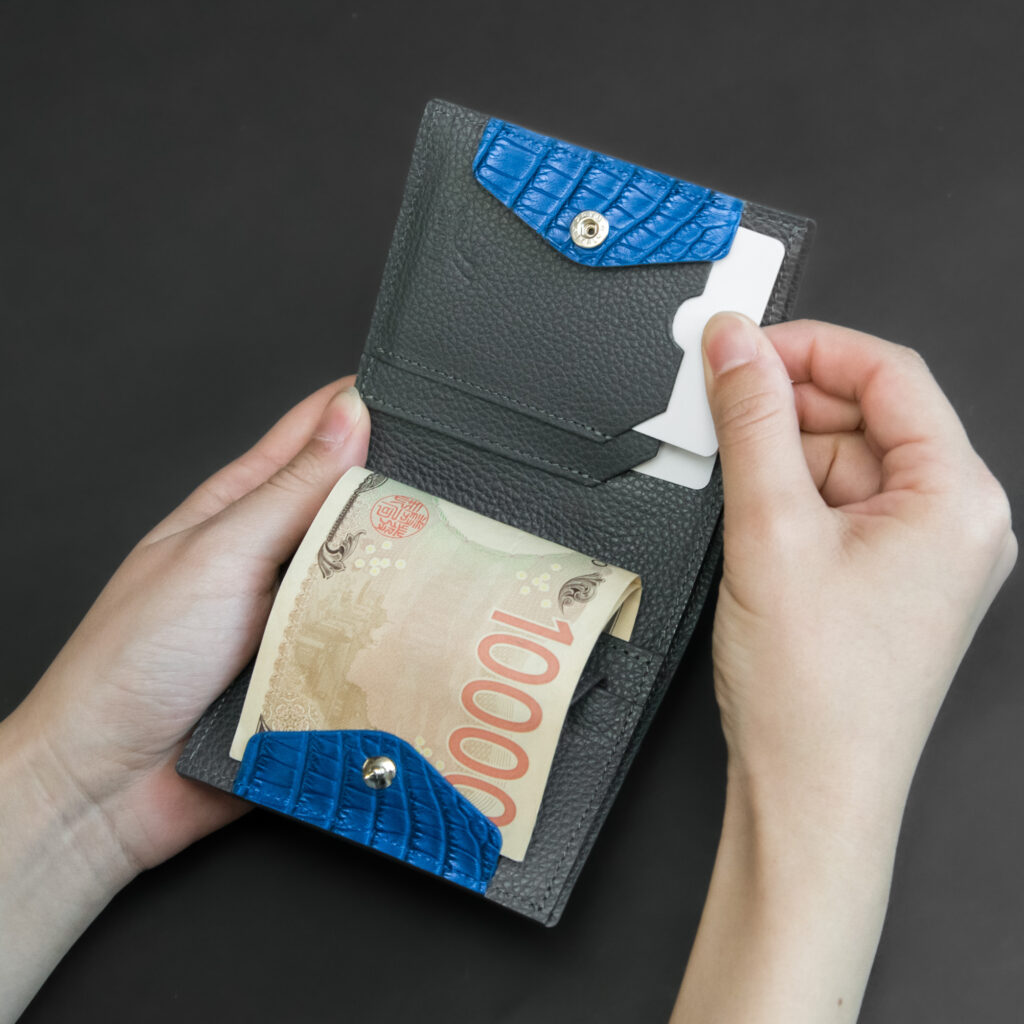 唯一の二つ折り財布。カードも現金もコンパクトに持ち運びたい方にオススメ。