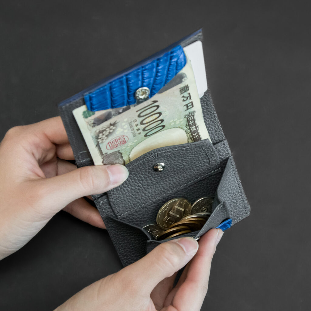 小銭入れを小さくし、マチのパーツも小さくすることで、お札の角にマチが接することなくスマートに収納できるようになりました。