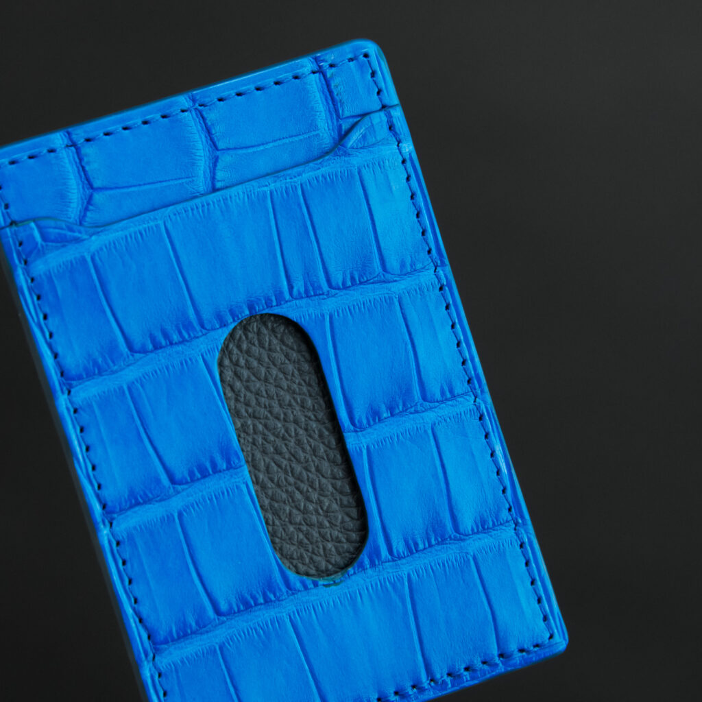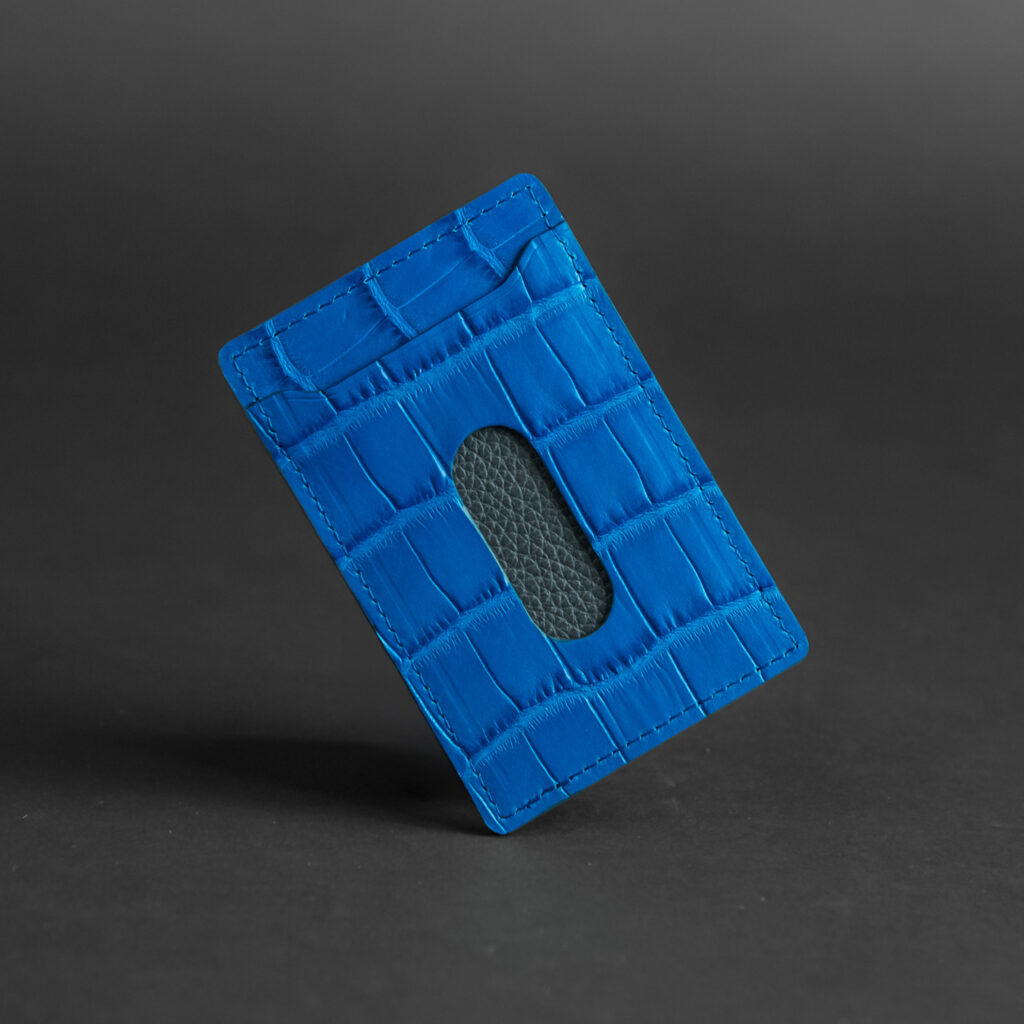 両面に1枚ずつカードが入れられるパスケースです。日常にヒマラヤワニ革の美しさを。