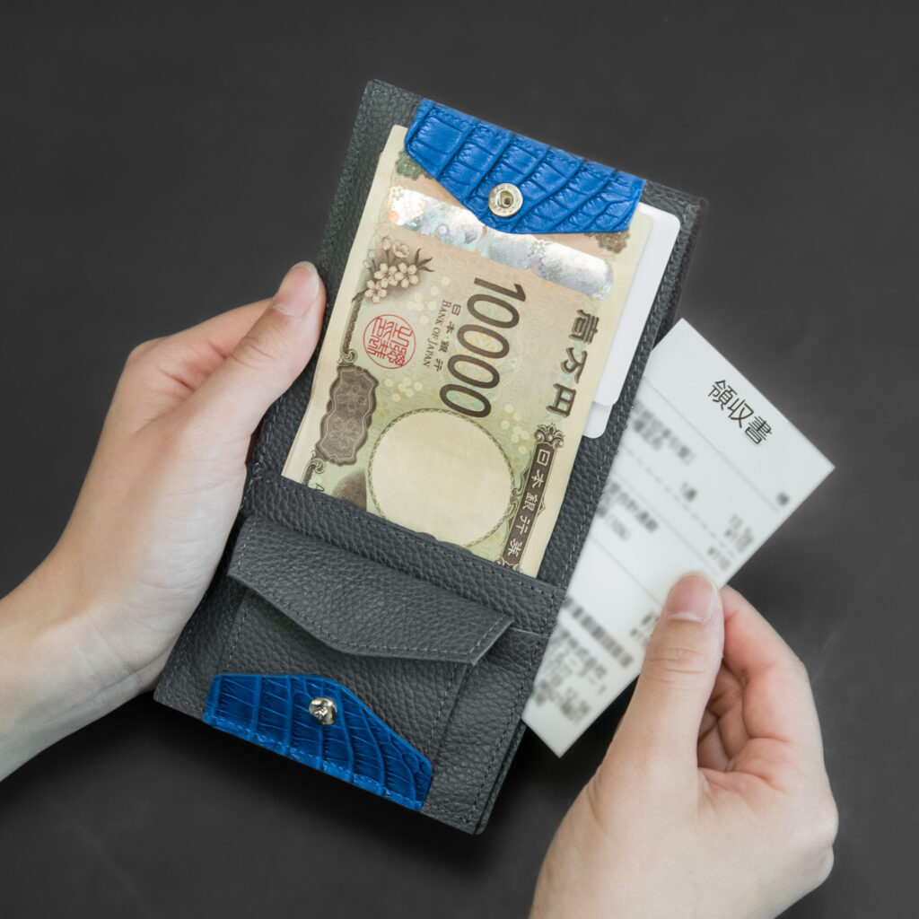 コンパクト財布ではあまり入れることが出来なかったレシートや領収書も「極小二つ折り財布 Coupe」なら入れられます。