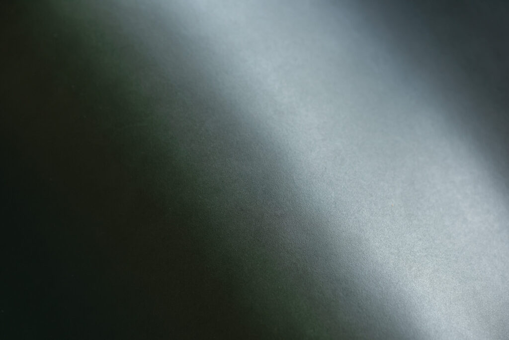 日本原皮のタンニン鞣しにセミアニリン仕上げ(染料と顔料の併用)を施したスムースレザーで、染料の透明感のある染色と顔料による表面のコーティングによって綺麗な発色が均一に仕上がっています。
