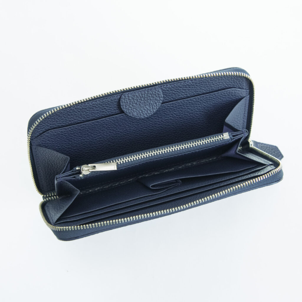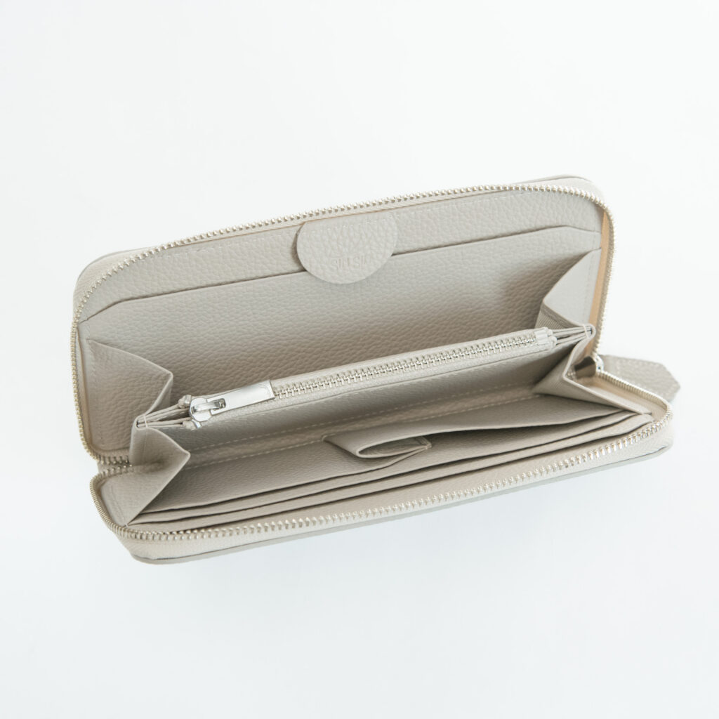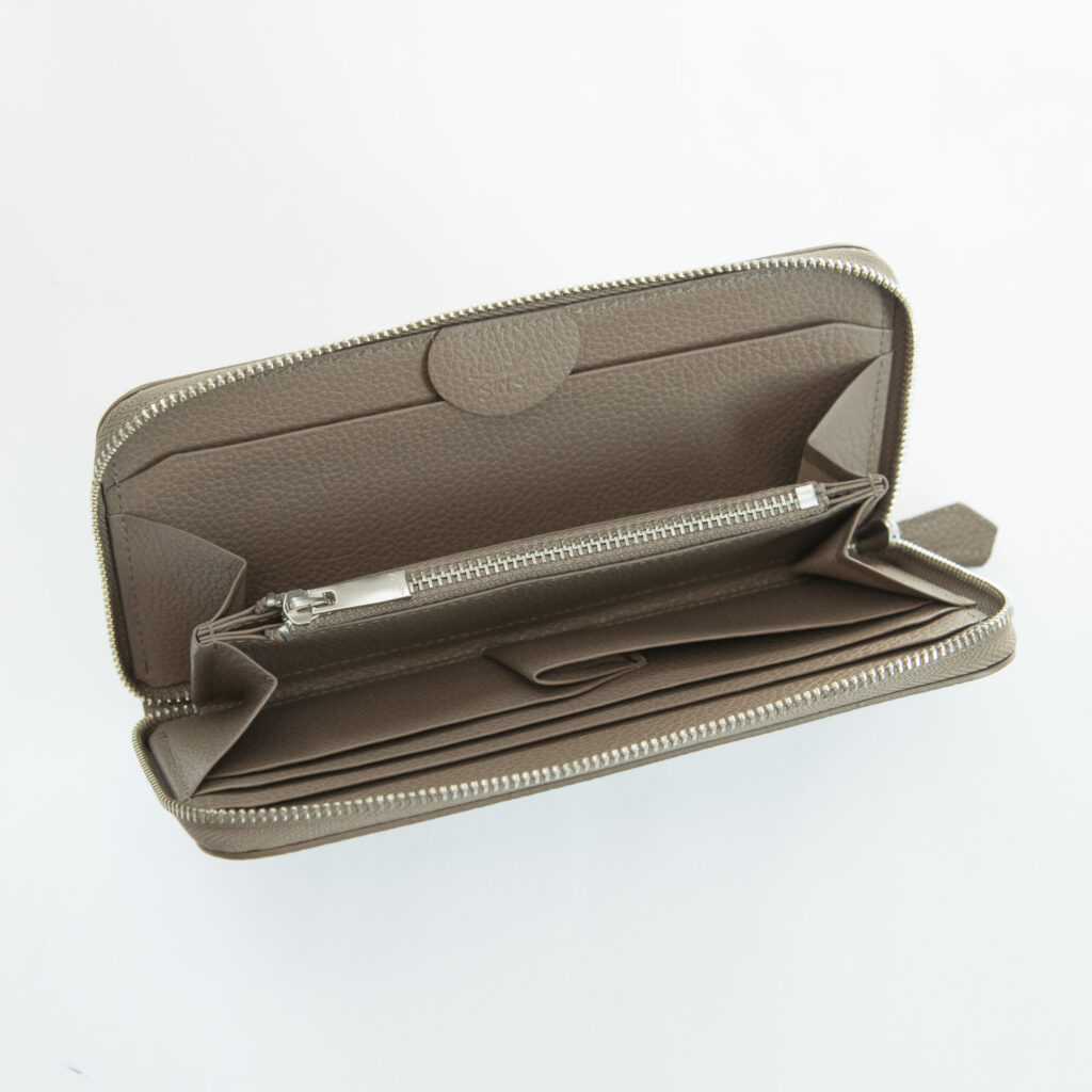 従来までのラウンドジップ長財布は小銭入れが深くて全体が見えづらく、取り出しにくいものが多かったため、改良を重ねました!小銭入れを浅くすることで無駄なスペースを削り、取り出しやすくなりました。