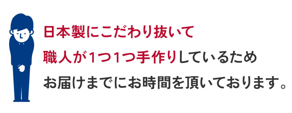 海外生産であればすぐに大量生産することも可能ですが、私たちはあえてそれをせず、日本製にこだわり抜いてお届けしています。