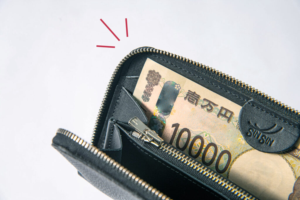 お札ストッパーを付けることで、ファスナーにお札が挟まることを防ぎます。
