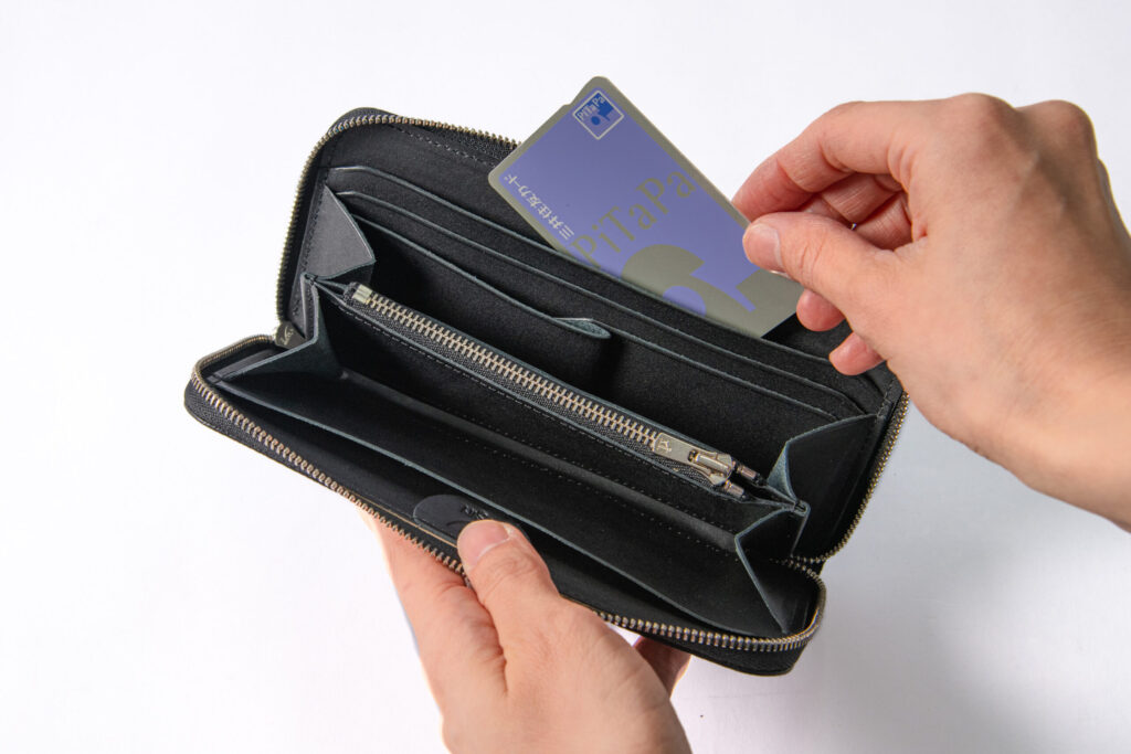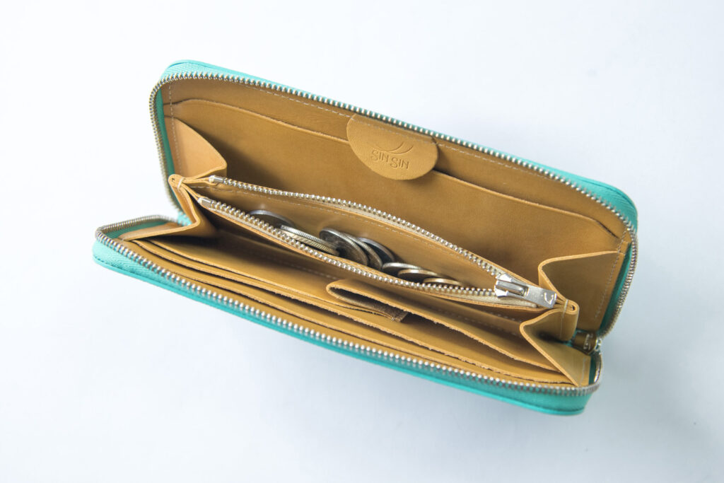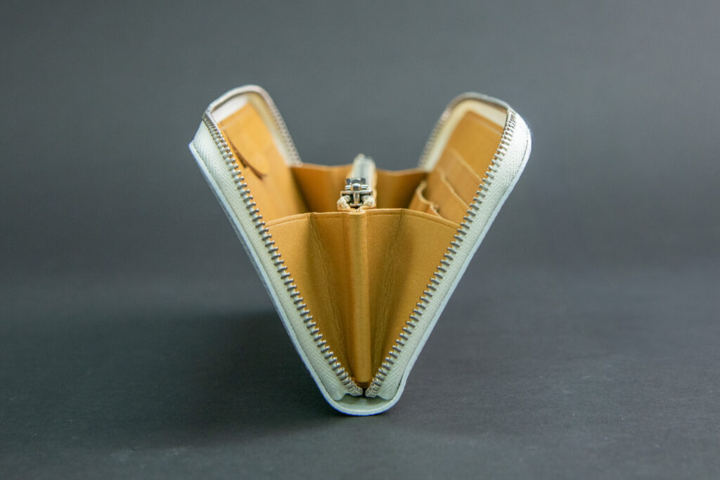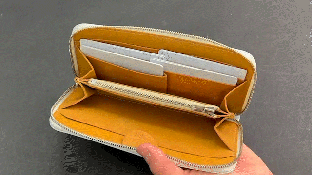 従来までのラウンドジップ長財布は小銭入れが深くて全体が見えづらく、取り出しにくいものが多かったため、改良を重ねました!小銭入れを浅くすることで無駄なスペースを削り、取り出しやすくなりました。