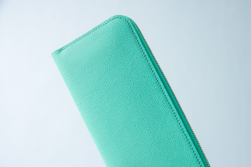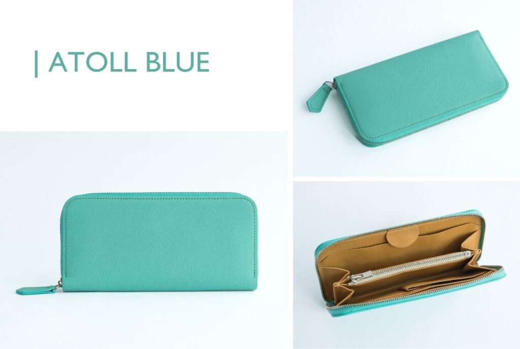 アトールブルーのみ革のシボ感(粒)が小さくなっております。