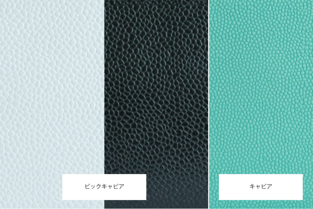 キャビアスキンは、ヨーロッパの高級メゾンで使用されているので知る人ぞ知る有名レザーです。フランスのHAAS(アース)社の職人が作っております。