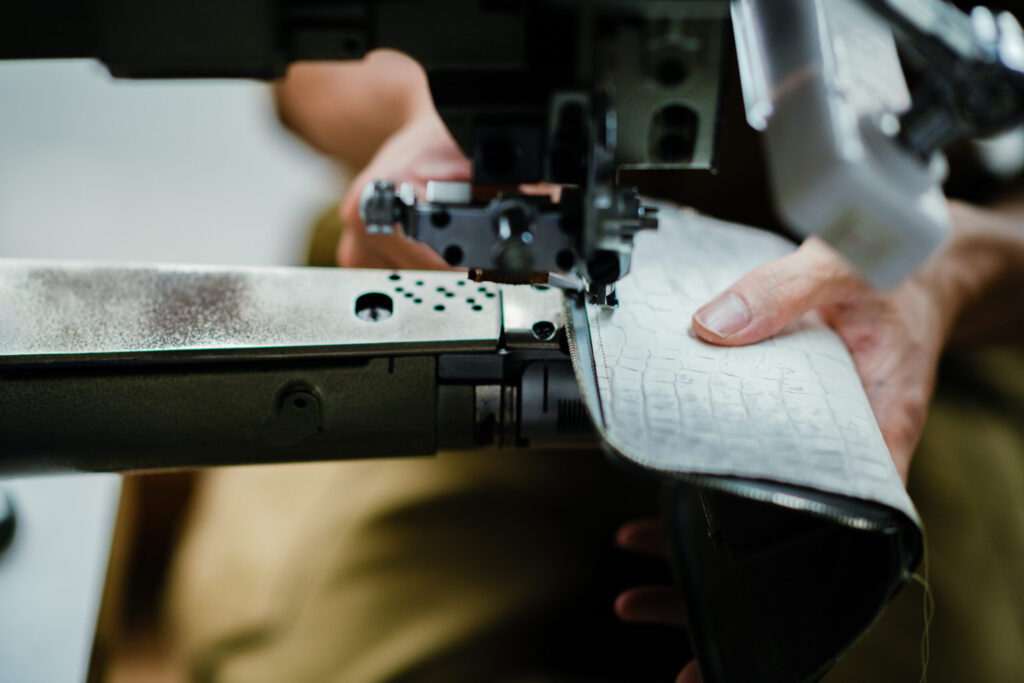 新進工房はヘンローン社から財布用クロコを直接仕入れ、素材選びから行います。だからこそ、ヒマラヤクロコの本物の美しさを“素材の確かさ”からお届けできます。