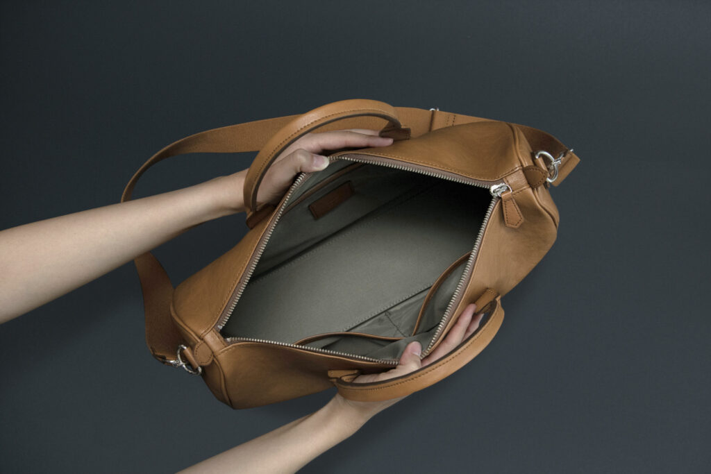 革の厚みを調整し芯材にもこだわって製作したので、本革製なのに「約730g」という軽いバッグに仕上がりました。