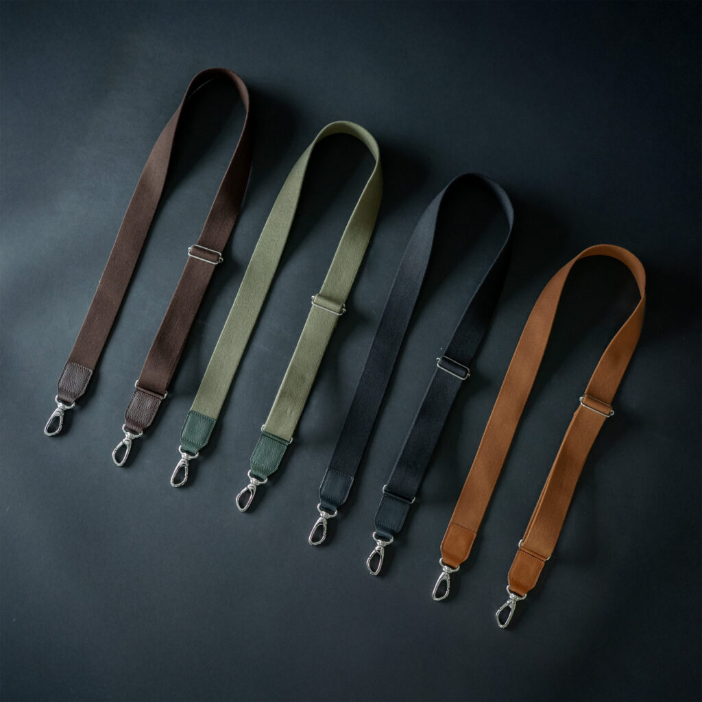 両面アクリルテープの「ショルダーベルト38」表がレザーの「レザーショルダー38」からお選びいただけます。