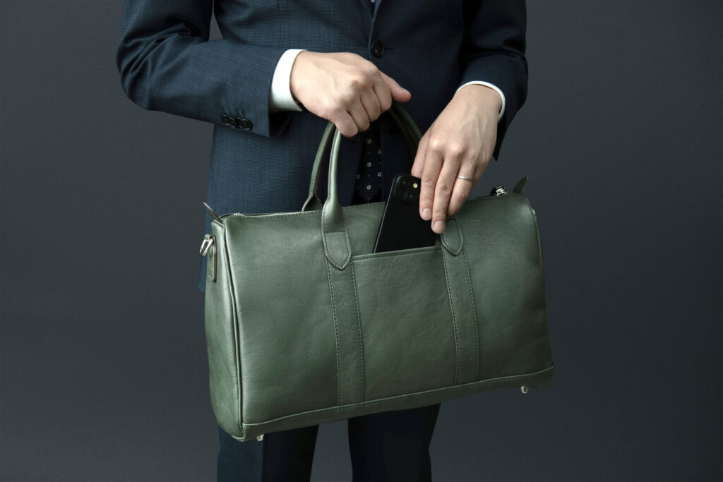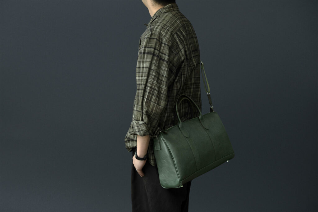 革の厚みを調整し芯材にもこだわって製作したので、本革製なのに「約730g」という軽いバッグに仕上がりました。