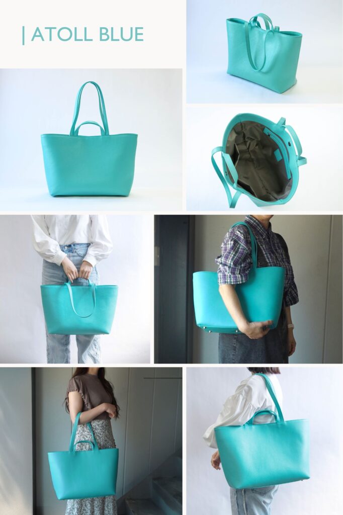 小さめのシボで半光沢の自然な表情を持つため、このバッグにピッタリと思い、採用しました!