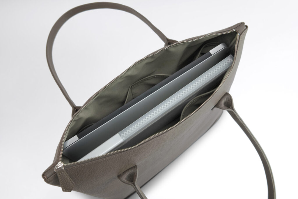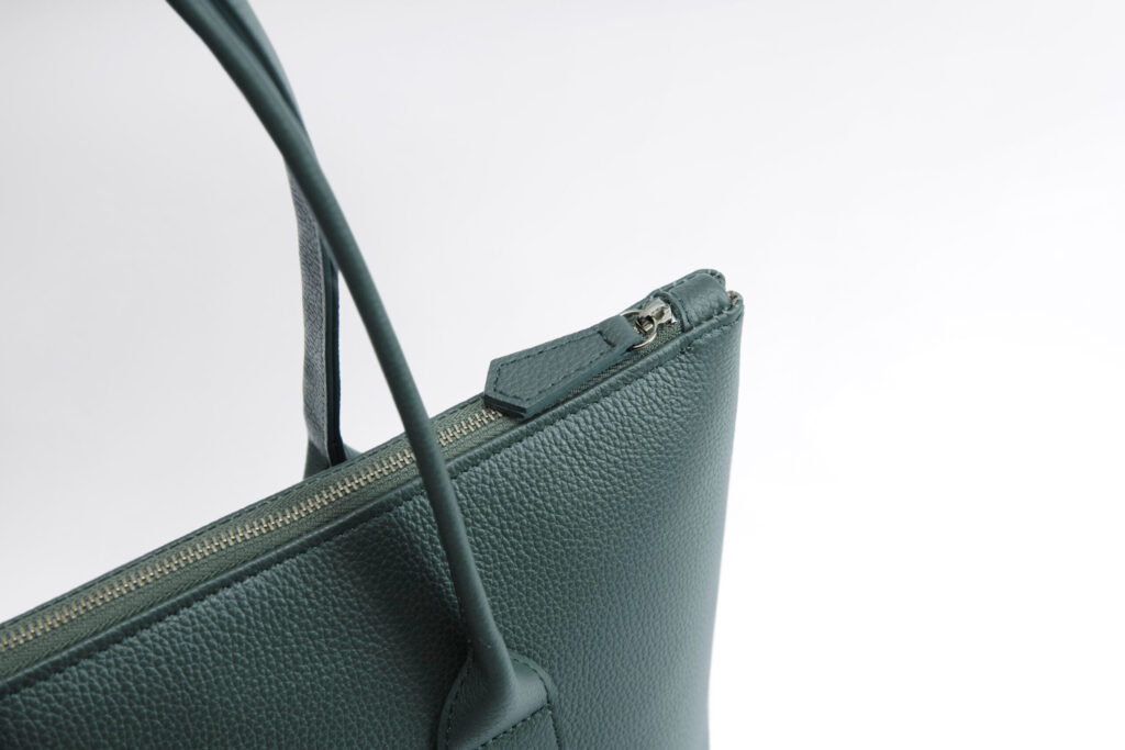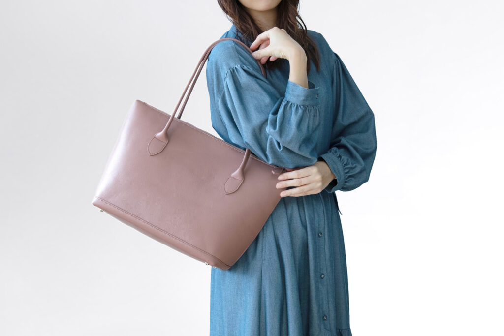 小さめのシボで半光沢の自然な表情を持つため、このバッグにピッタリです。