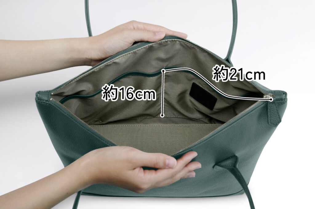 革の厚みを調整し芯材にもこだわって製作したので、本革製なのに「約640g」という軽いバッグに仕上がりました。