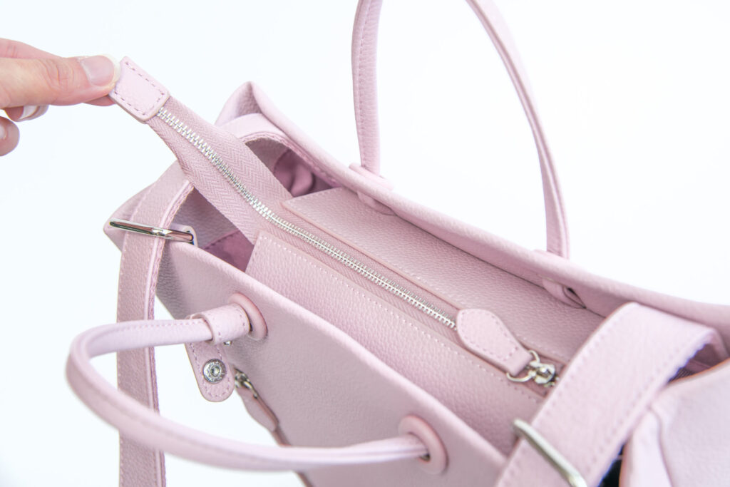 背面に、小物などを収納できるファスナーポケットが付いています。