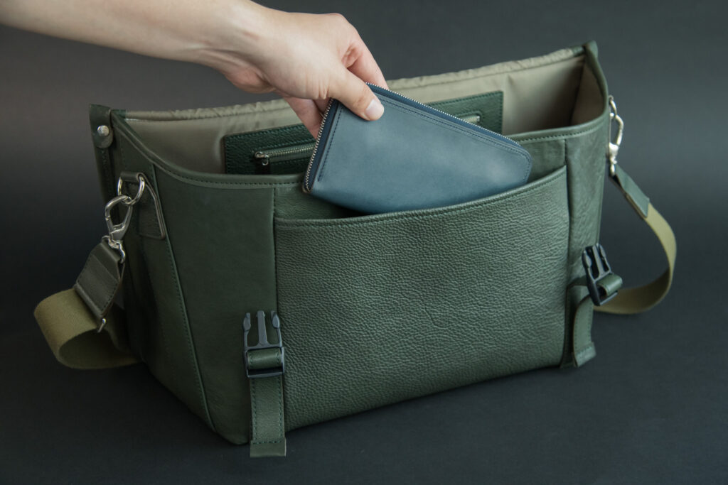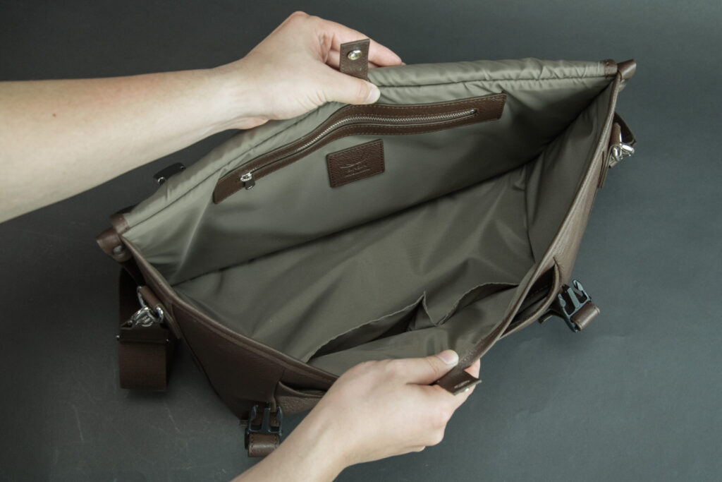 芯材などを調整することにより、本革なのに重すぎないバッグに仕上がりました。