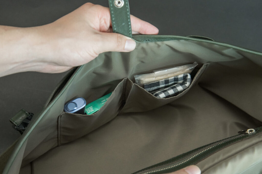 スマホやハンカチなどサッと取り出したいものを入れるのに便利です。