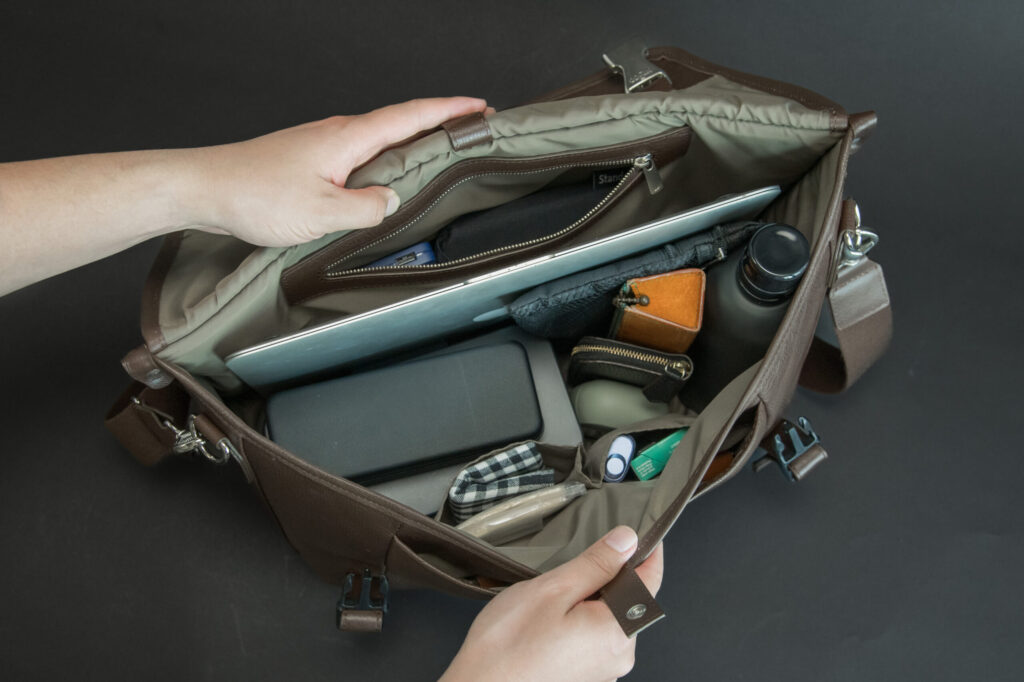手や肩にかかる圧力が分散されるため、長時間持ち歩いても疲れにくいです。