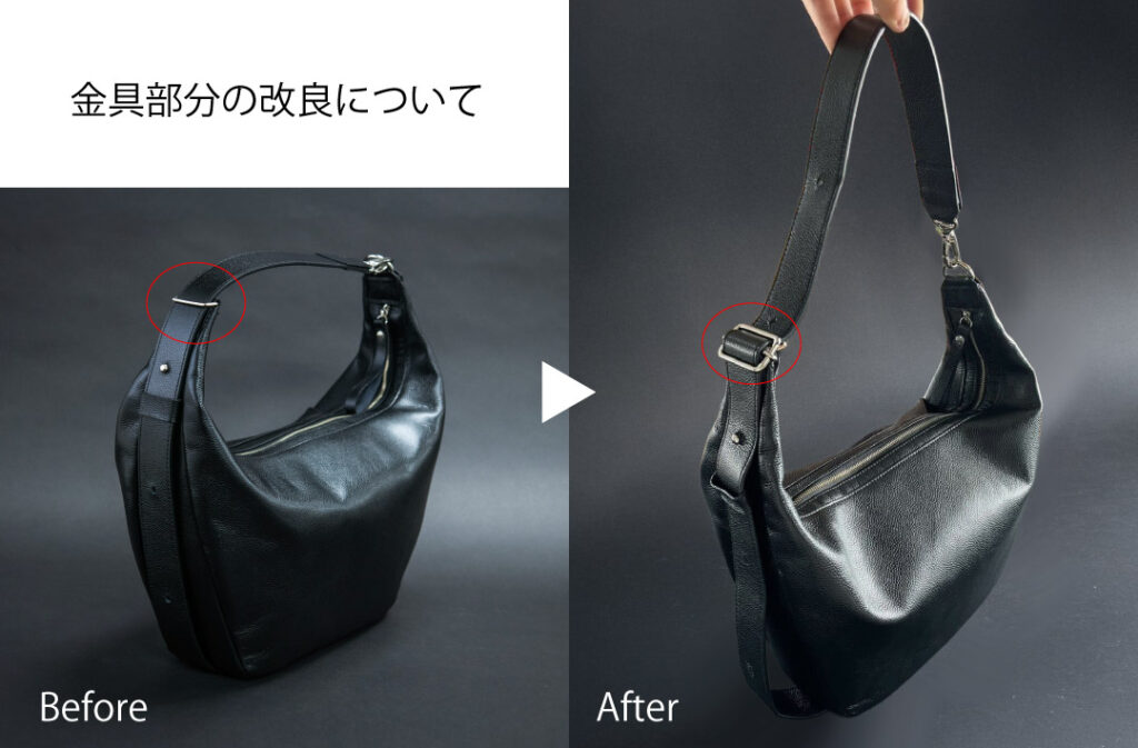 ショルダーが外れやすかったのですが、改良することによりしっかりと固定されるようになりました。改良版の仕様で製作させていただきます。