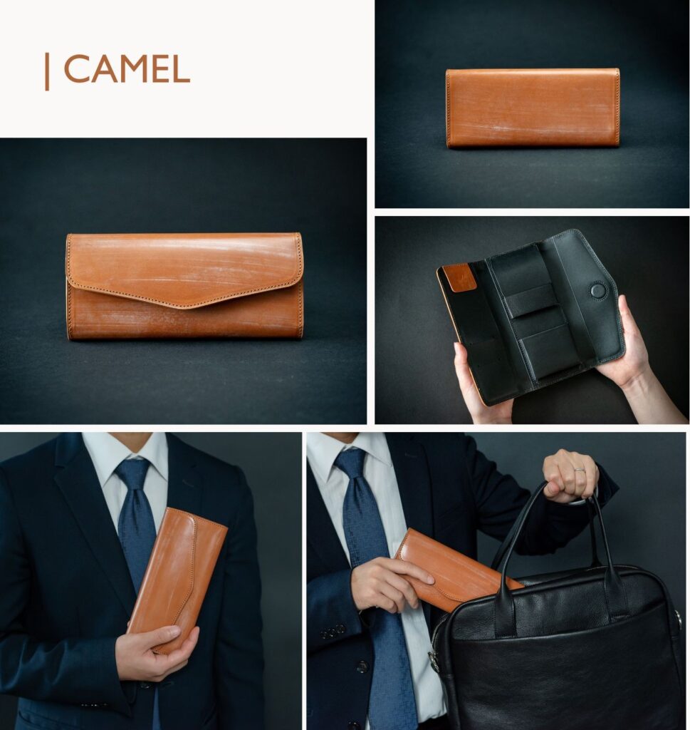 蝋(ブルーム)が個性を演出し、使うほどに味が出る“育てる革”です。
