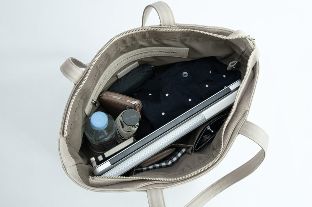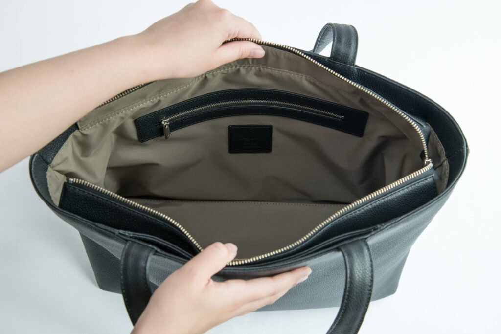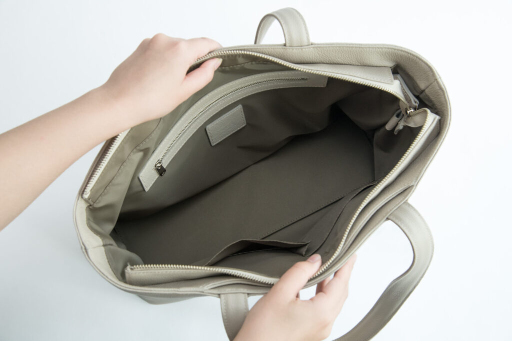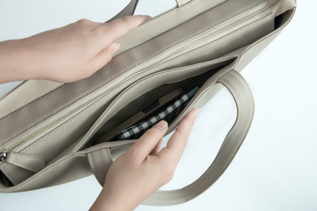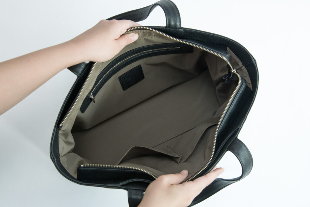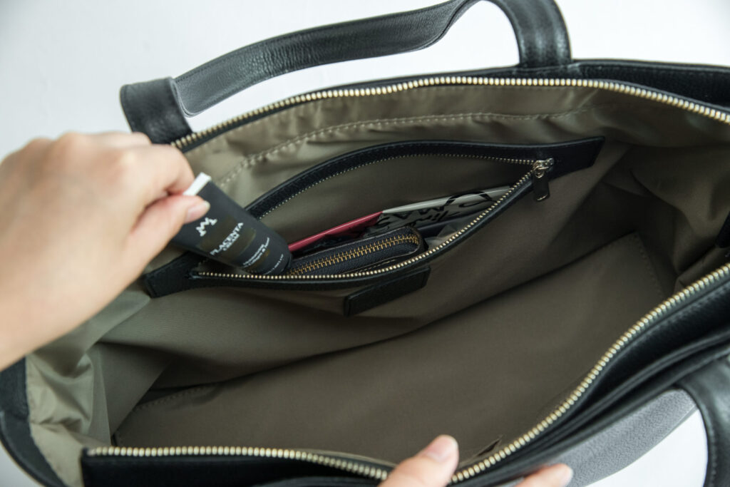 芯材などを調整することにより、本革なのに重すぎないバッグに仕上がりました。