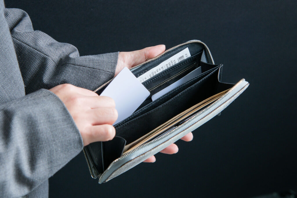 ファスナーレスなので、その場でもらったレシートなどをスマートに収納できます。
