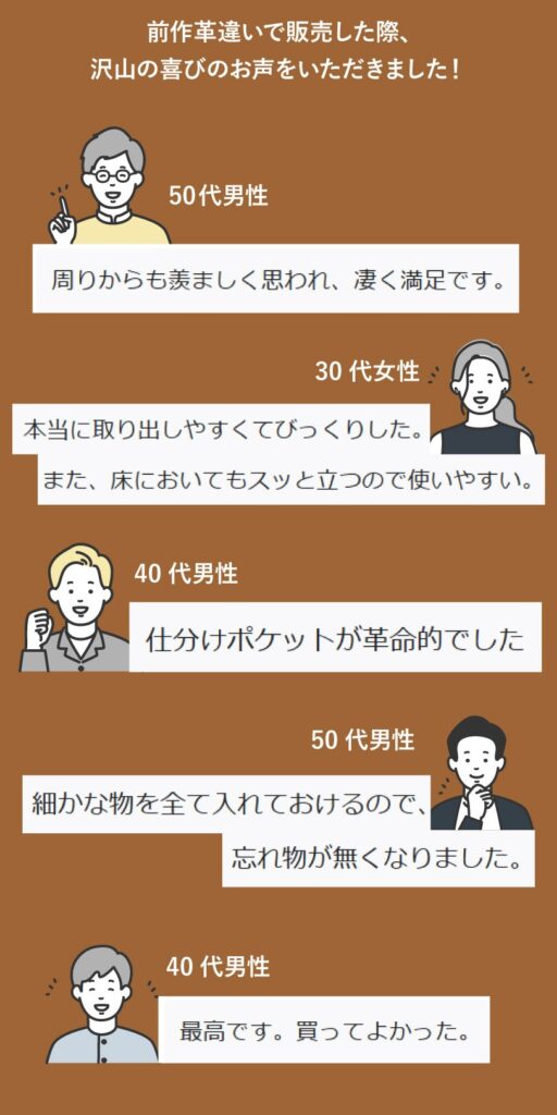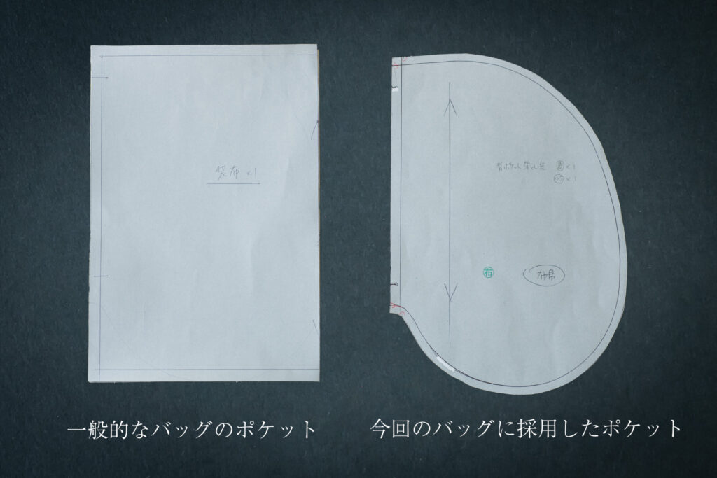 サンプル製作時に、スタッフから「ポケットにモノをたくさん入れると、バッグの下の方がグニャっとなって見た目が良くない」と指摘を受けて、生まれたのが「屋台骨構造」です。見事にモノを入れても倒れないバッグが完成しました!!