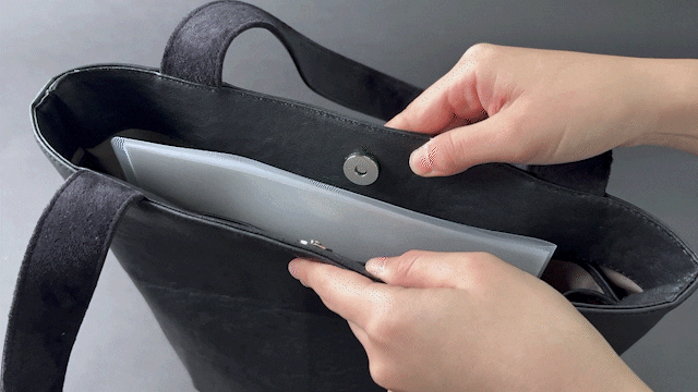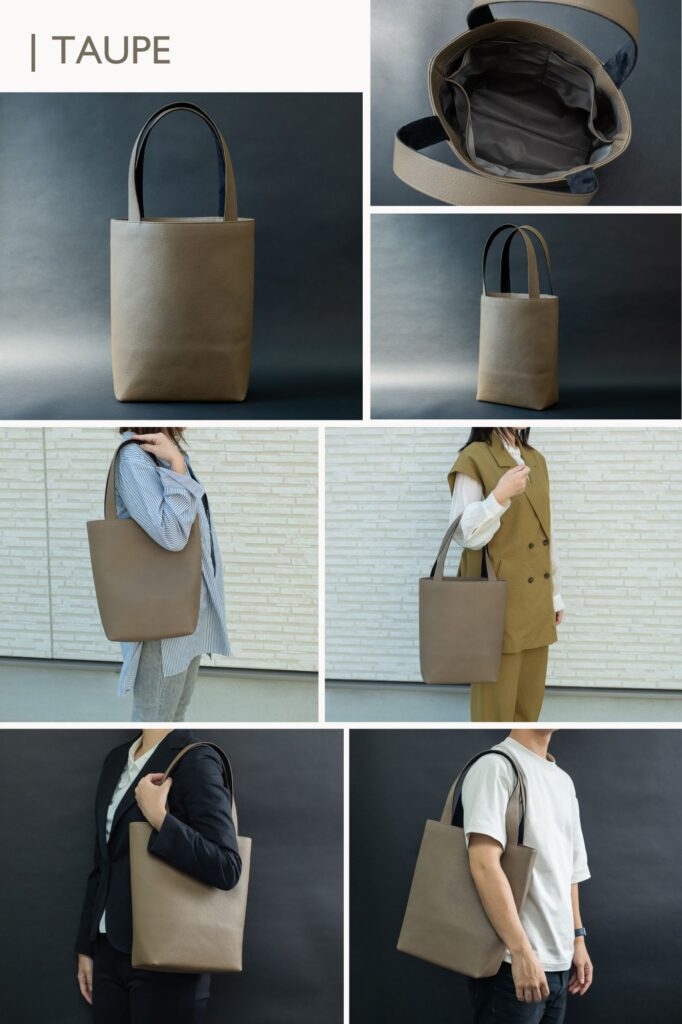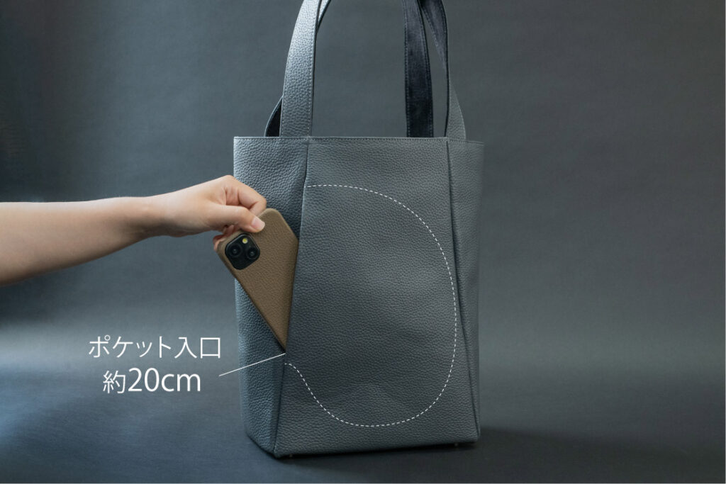 タテ型トートの魅力である見た目のスマートさを保ちつつ、大容量の設計!