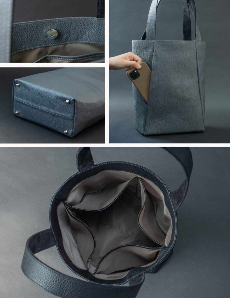 縦型トートでありがちな、「荷物がごちゃつく…」「下にある物が取り出しにくい!」という事が解消され、素早く物を取り出すことができます。