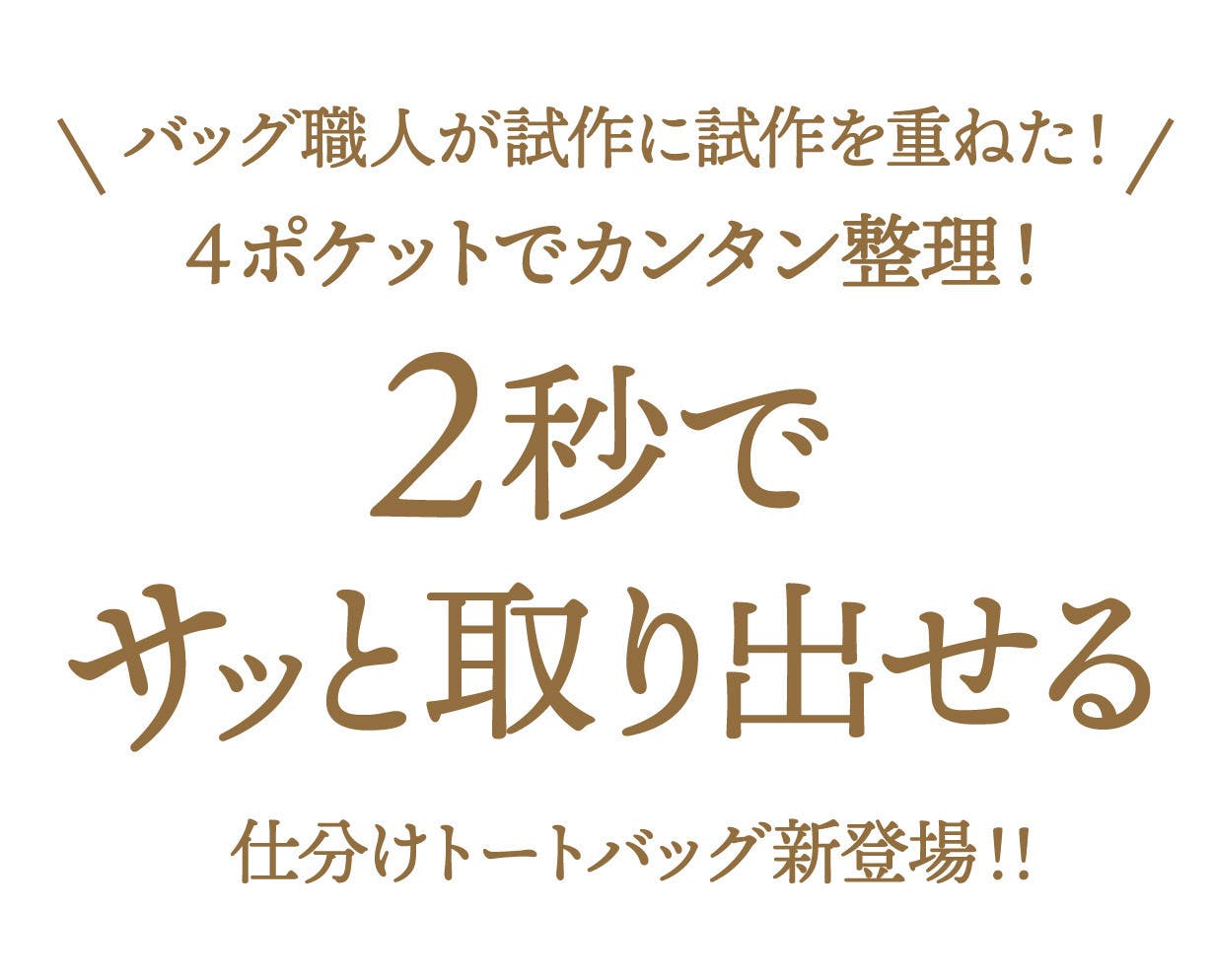 縦型トートでありがちな、「荷物がごちゃつく…」「下にある物が取り出しにくい!」という事が解消され、素早く物を取り出すことができます。