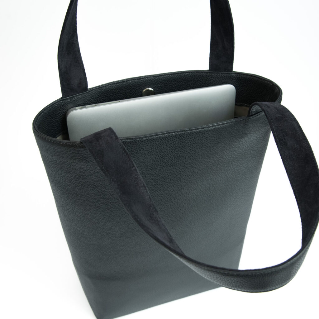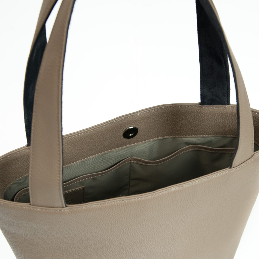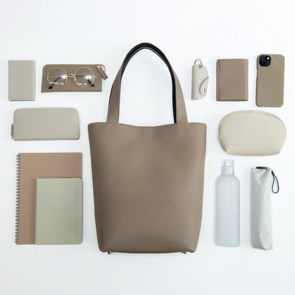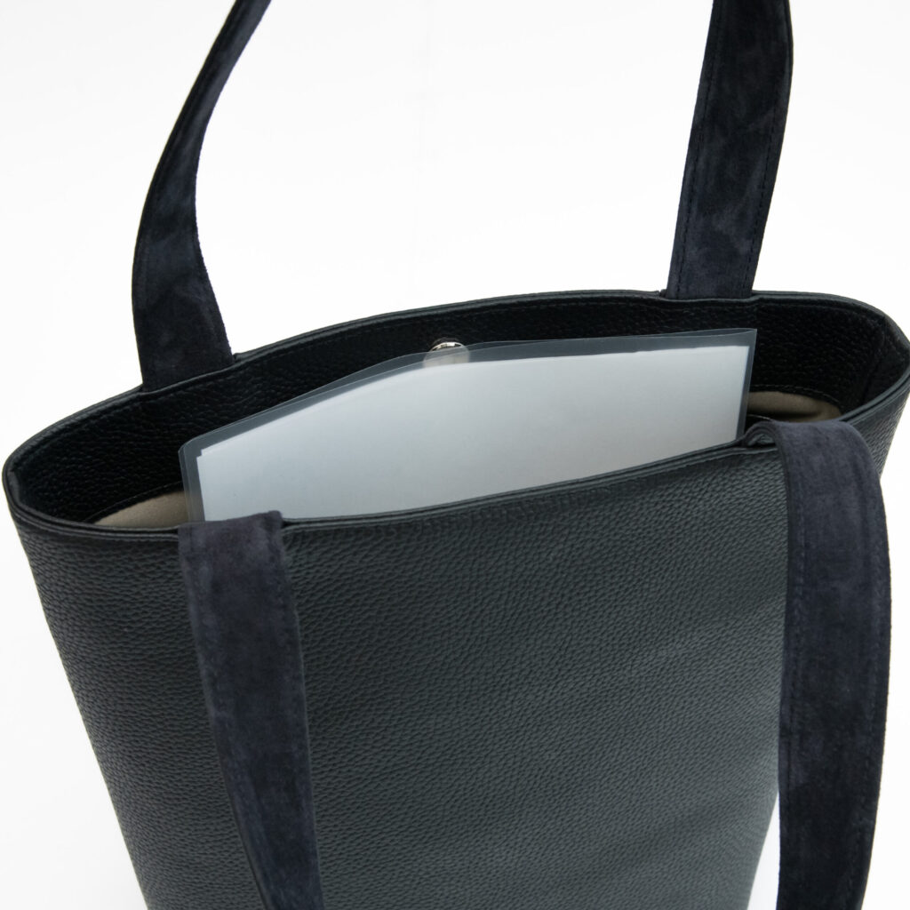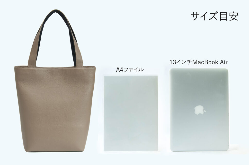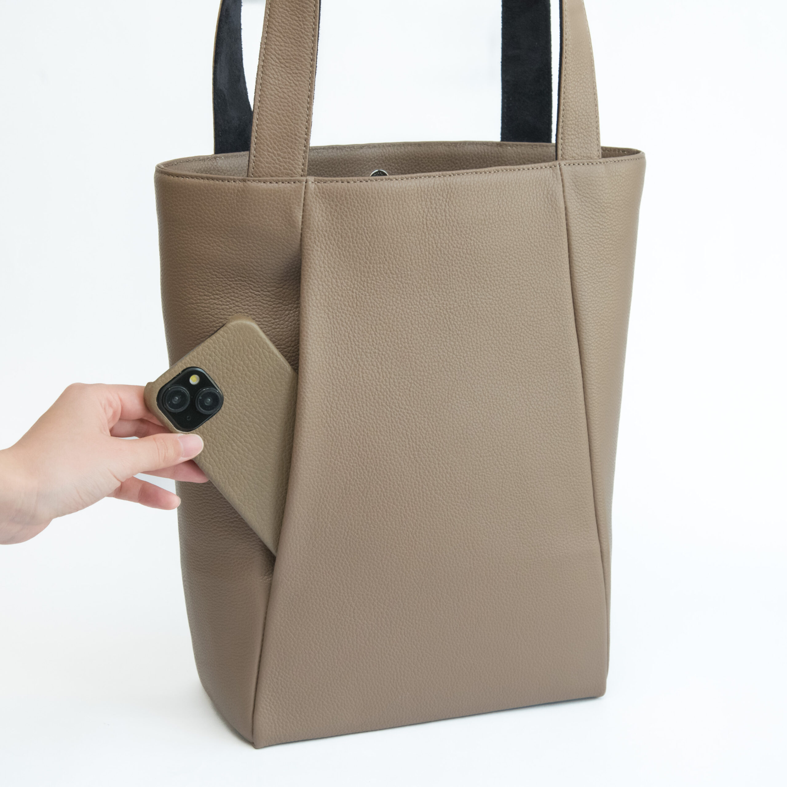 タテ型トートの魅力である見た目のスマートさを保ちつつ、大容量の設計