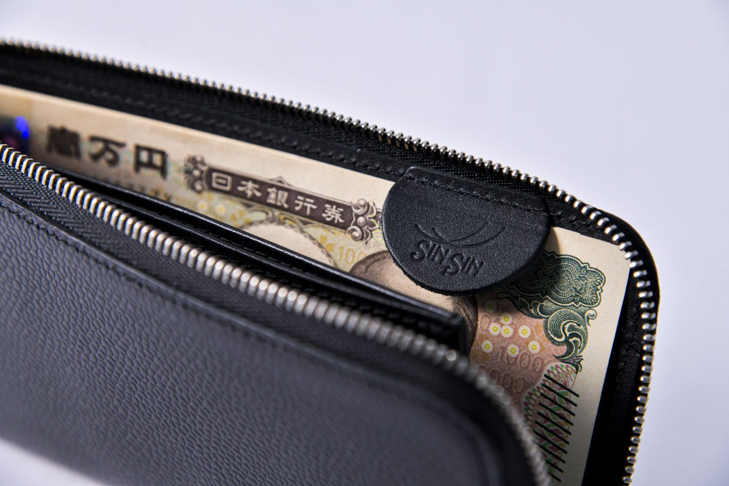 お札タブ(ストッパー)を付けたので、お札がファスナーに挟まってストレスになるということがありません。