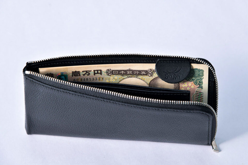 1万円がピッタリ入るコンパクトさを実現。かつ使いやすくなるよう試行錯誤しました。