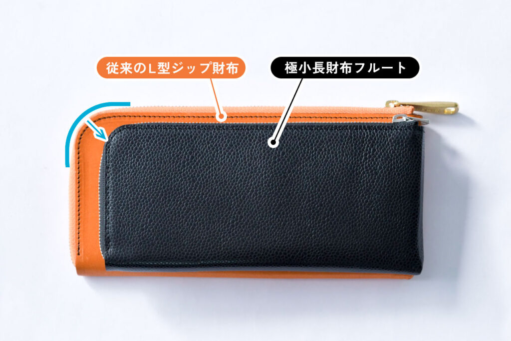 弊社従来L型ジップ長財布より一回り小さくなりました。