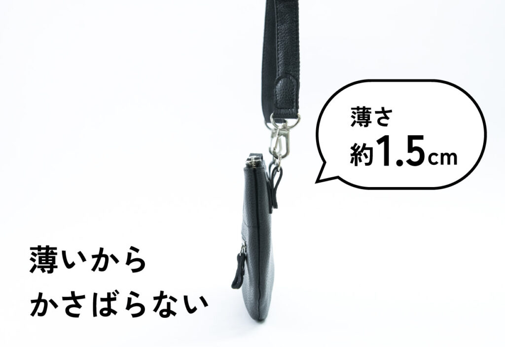 財布が一体となり、無駄が省かれるため、薄さ約1.5cmを実現!