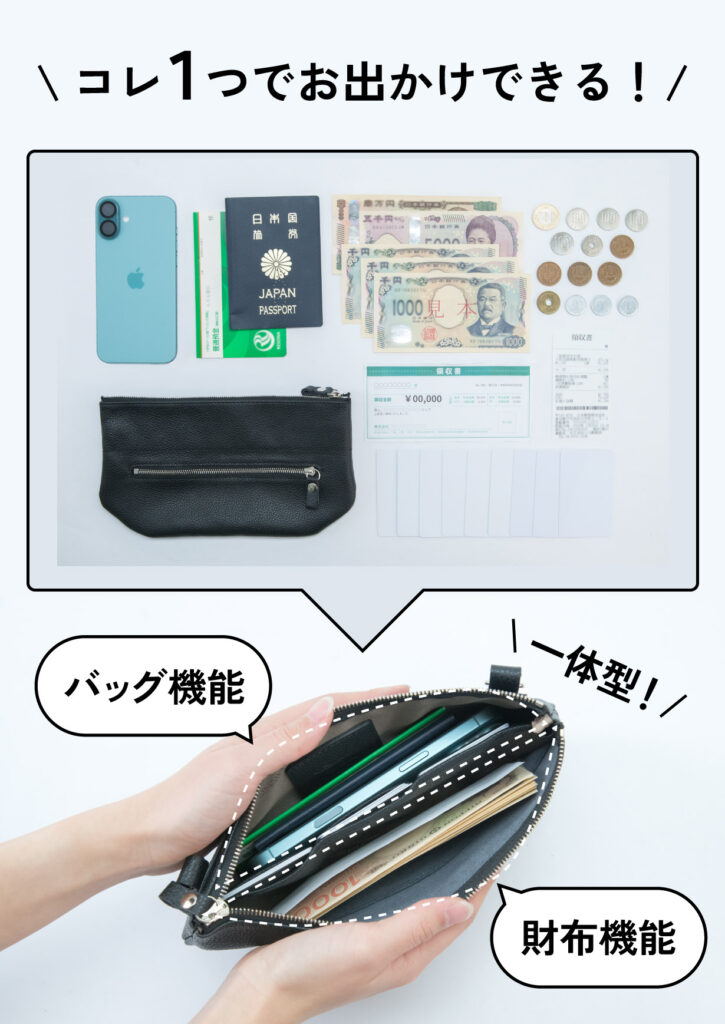 ①財布とバッグが一体型 持つのはこれだけでOK!