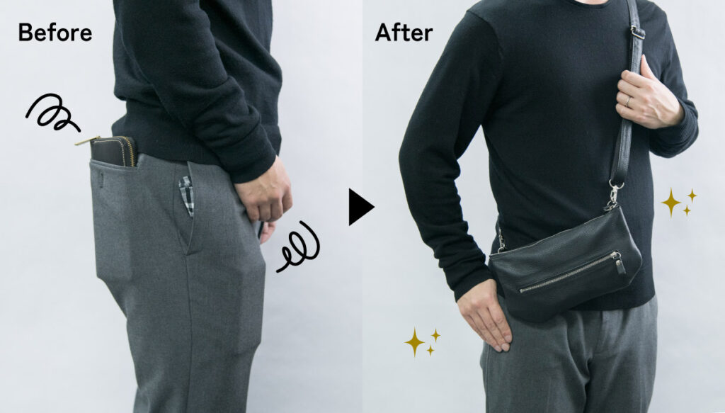 「ポケットに入れるとパンパンになるし、バッグは大げさすぎる…。」